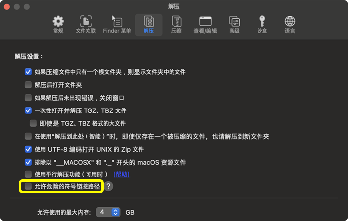 To create external symbolic links, enable the "Allow dangerous symbolic link paths" option in the "Extraction" tab of Bandizip's Preferences.