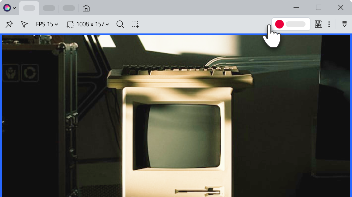 将 Honeycam 放置在要录制的位置,然后按下录制、停止和保存按钮即可。轻松快捷地将重要时刻录制成动画。