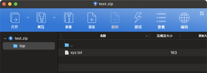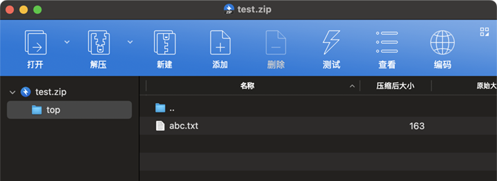 Bandizip c -root:top ~/Documents/test.zip ~/Documents/abc.txt